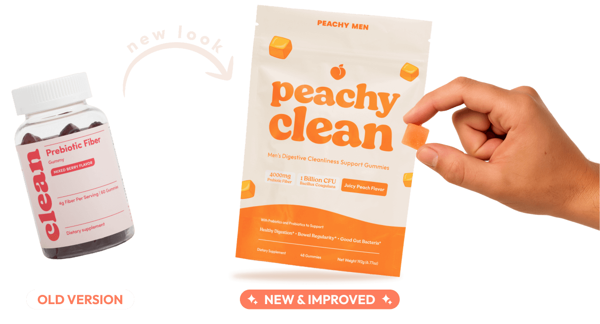 We took your feedback and made Peachy Clean even better. Our upgraded formula goes beyond fiber, adding prebiotics + probiotics that work together to keep your gut balanced, your digestion smooth, and your butt spotless.